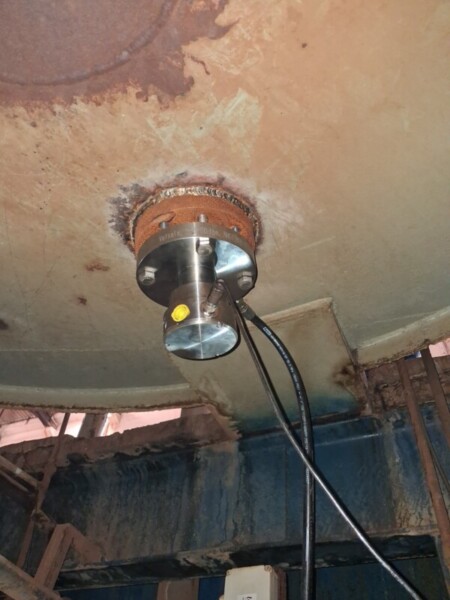 Refratômetro de Sonda Vaisala PR53GP, com flange 3” ANSI 150, prisma de safira e sistema de lavagem pressurizada. Instalado no fundo do cozedor (processo por batelada) para medição de Brix, garantindo alta confiabilidade e total integração ao processo industrial. O equipamento se destaca principalmente pela sua repetibilidade, assegurando a precisão necessária em cada ciclo de cozimento.
